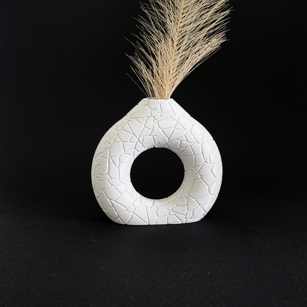 Diese einzigartige Vase wurde aus hochwertigem PLA-Kunststoff gefertigt und vereint modernes Design mit minimalistischer Ästhetik. Mit einer Höhe von 13 cm ist sie perfekt geeignet für kleinere Trockenblumen, Zweige oder dekorative Arrangements.